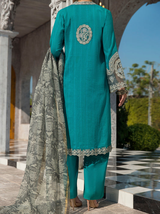 Sea Blue Nino Kara 3Pc Unstitched - ALP-3PS-1256