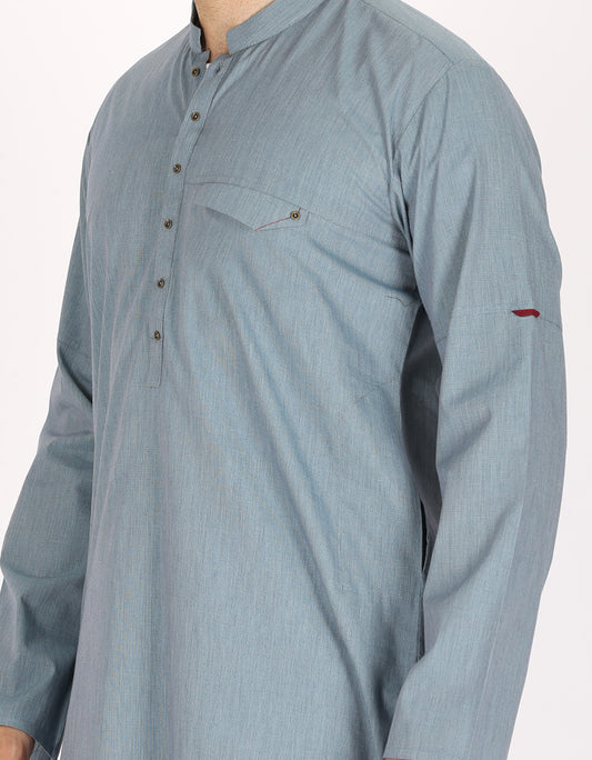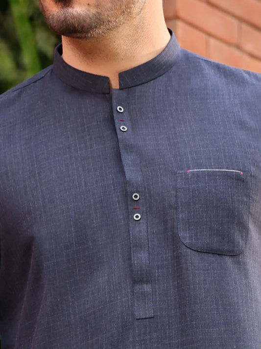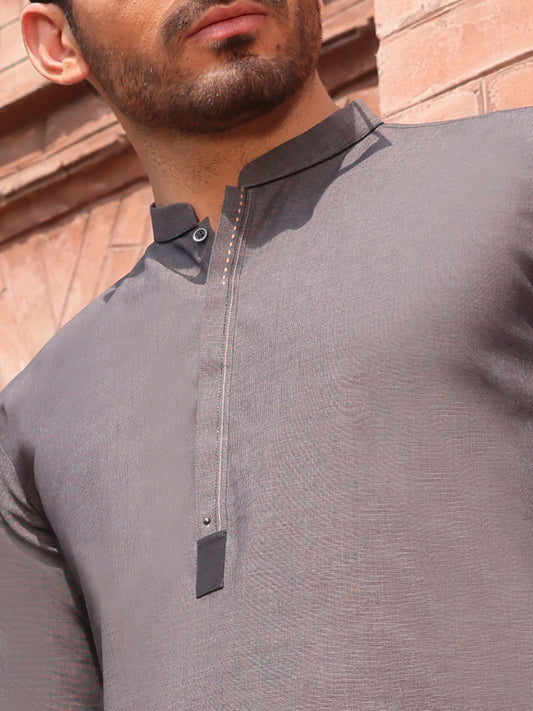 Charcoal Grey Blended Kameez Shalwar - AL-KS-2604
