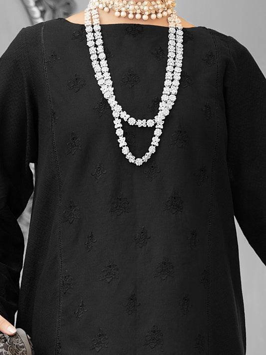 Black Cotton Dobby 3Pc Stitched - ALP-1027