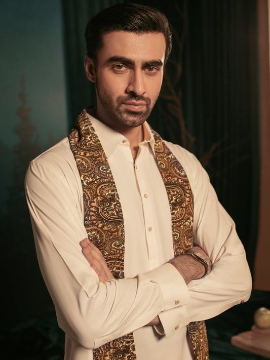 Off White Raw Silk Formal 3Pc Stitched - AL-3PS-LS-504