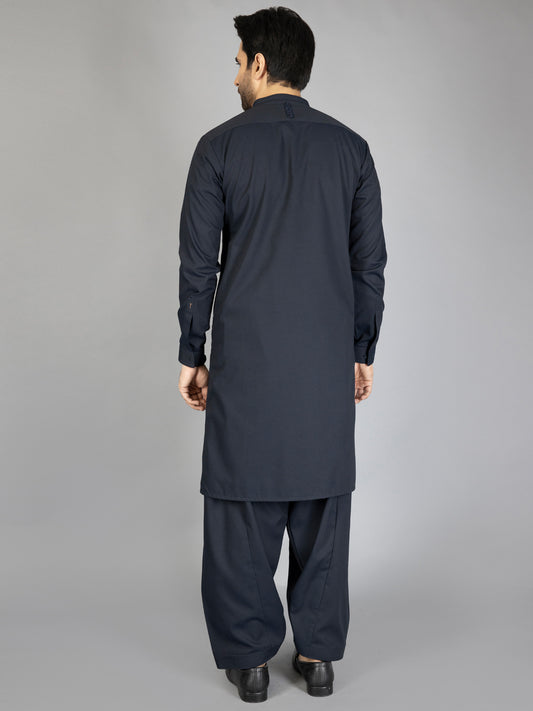 Midnight Blue Blended Kameez Shalwar - AL-KS-2859