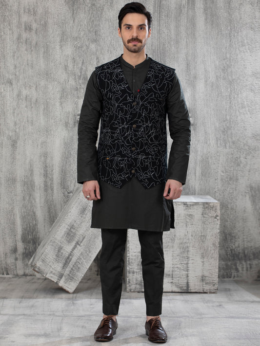 Navy Blue Blended Kurta Trouser - ALBY-KT-015