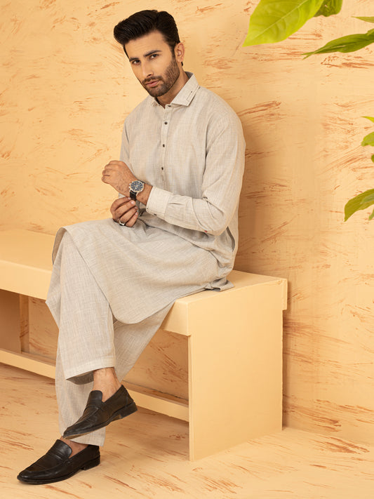 Off White Cotton Dobby 2 Piece Stitched - ALT-2PS-LKS-1158