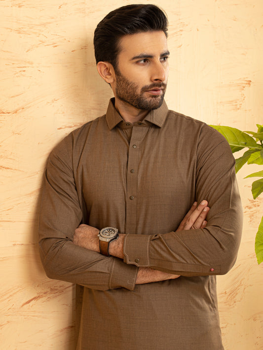 Brown Blended Unstitched Fabric - AL-UN-JHR-15054