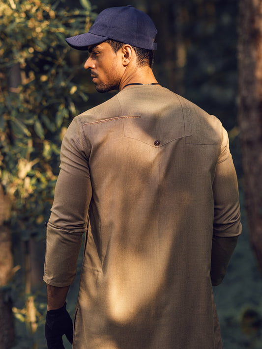 Beige Blended Kameez Shalwar - AL-KS-2459