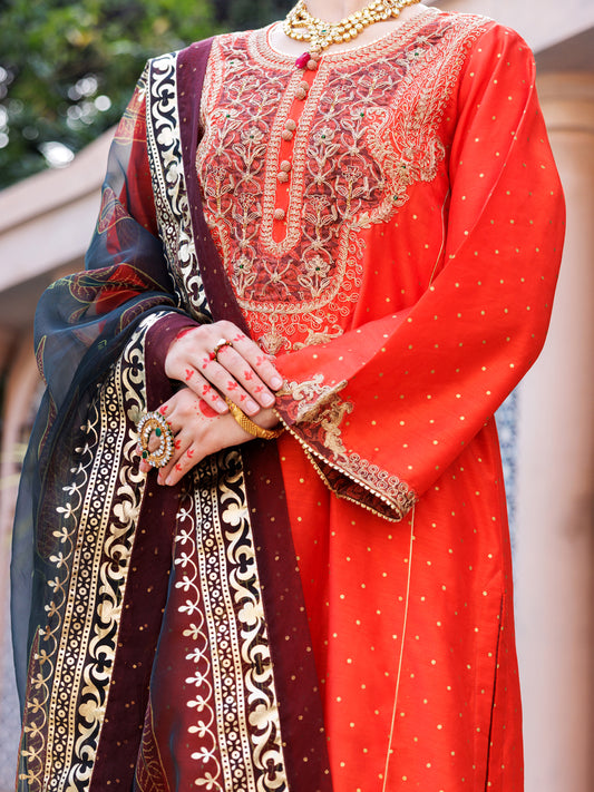 Orange Maple Silk 3Pc Formal Stitched - AL-3PS-LS-437