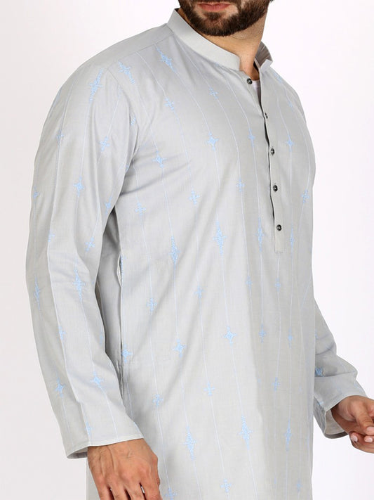 Light Grey Blended Kameez Shalwar - AL-KS-2480-R1