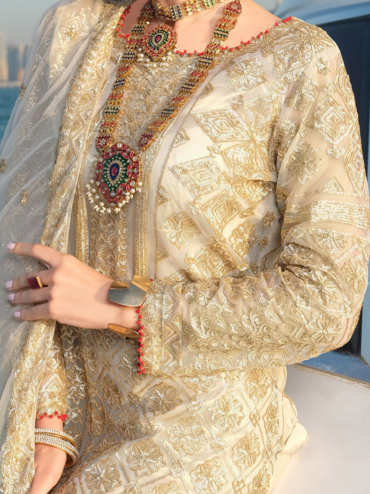 Beige Net 3Pc Stitched - ALP-3PS-907
