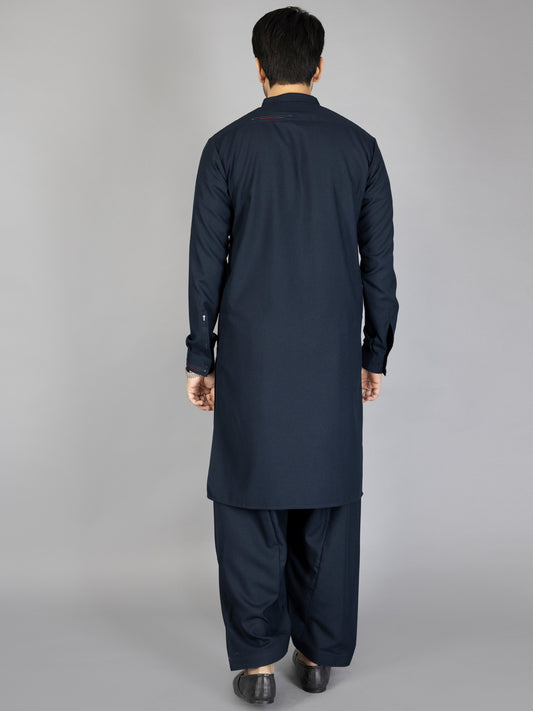 Navy Blue Blended Kameez Shalwar - AL-KS-2845