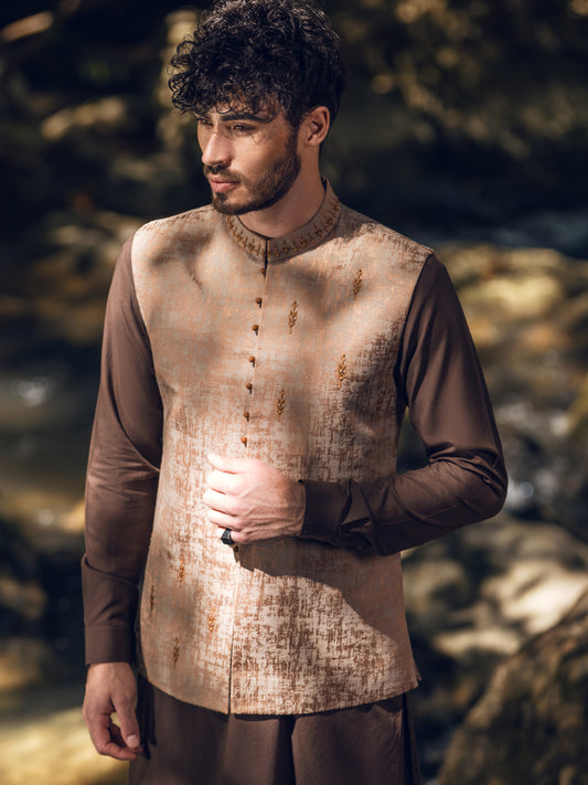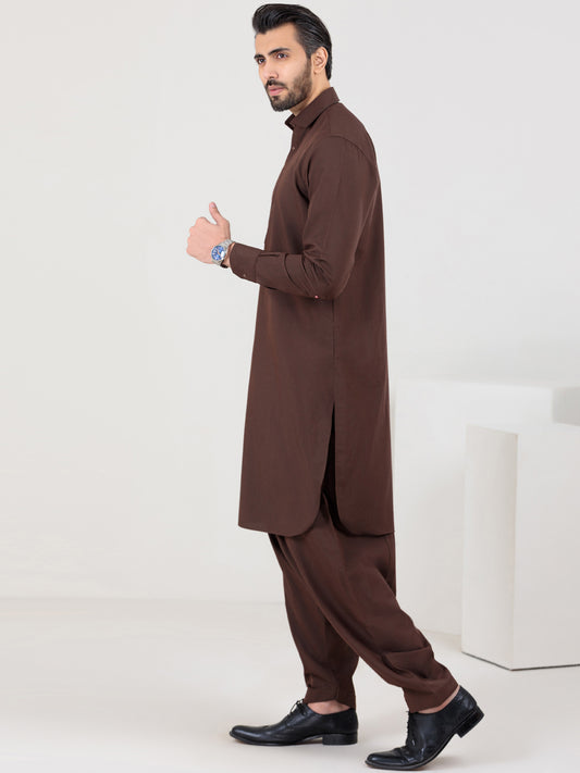 Brown Blended Kameez Shalwar - ALWA-KS-315