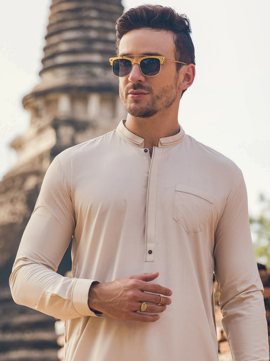 Khaki Blended Kameez Shalwar - AL-KS-2787