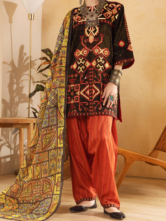Black Lurex Jacquard 3Pc Unstitched - ALP-3PS-1304