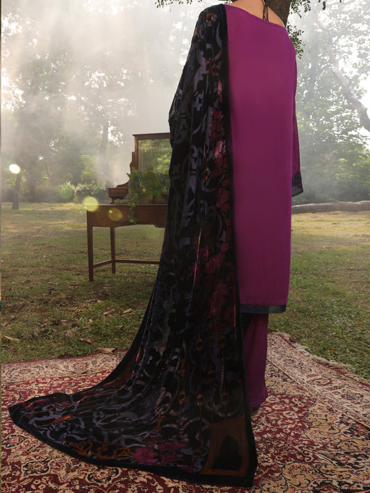 Purple Slub Viscose Stitched 3Pc - AWP-3PS-439