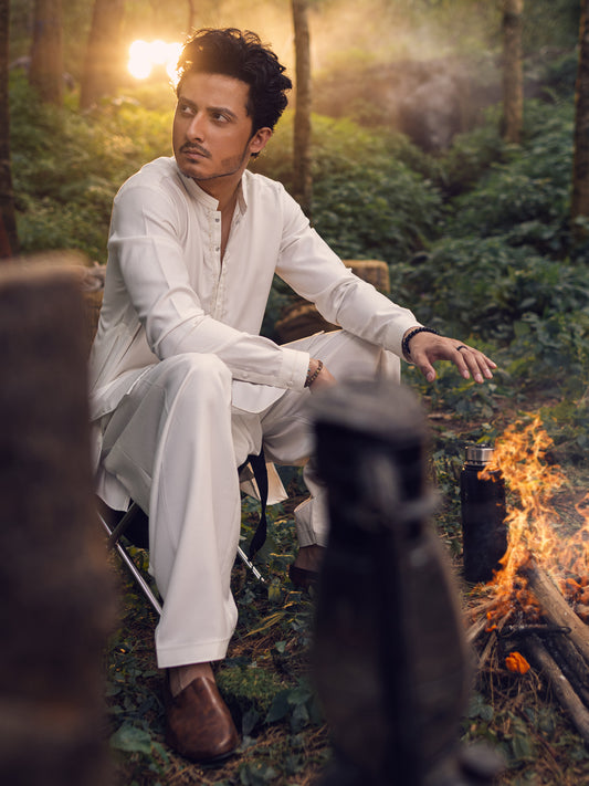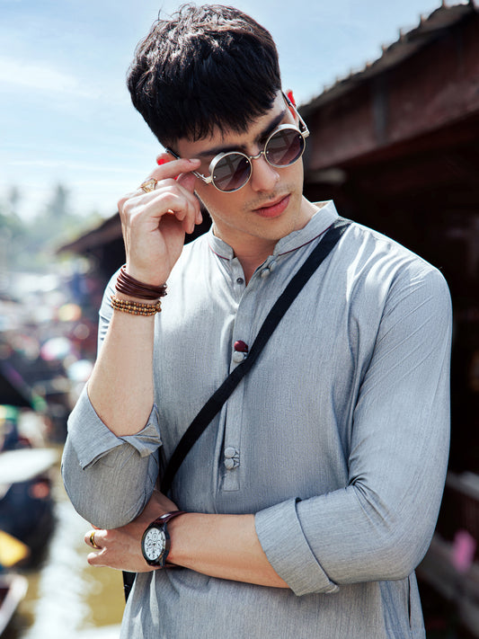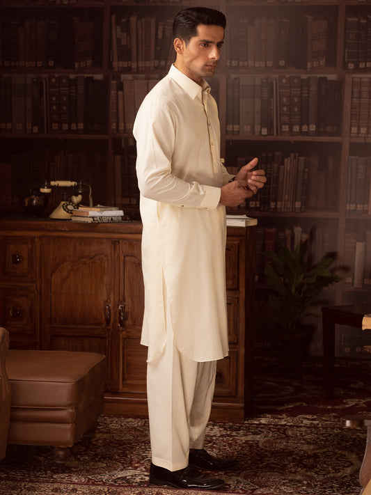 Light Grey Blended Kameez Shalwar - AL-KS-2991
