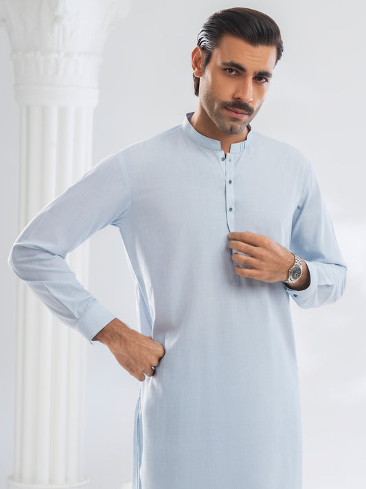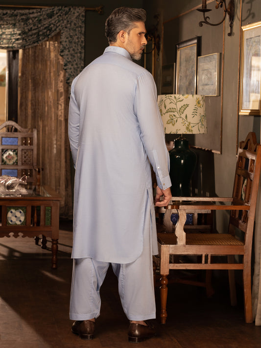 Light Blue Blended Kameez Shalwar - AL-KS-3163