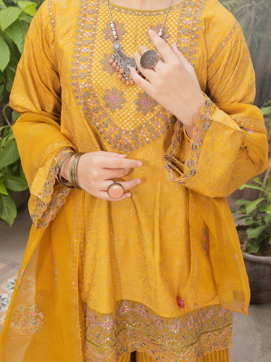 Mustard Viscose Gold 3 Piece Stitched - ALT-3PS-LS-1134