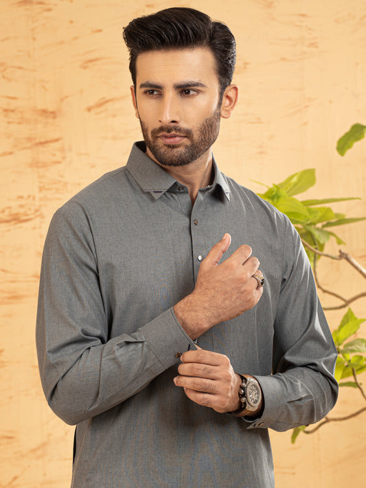 Charcoal Grey Blended Kameez Shalwar - ALWA-KS-464