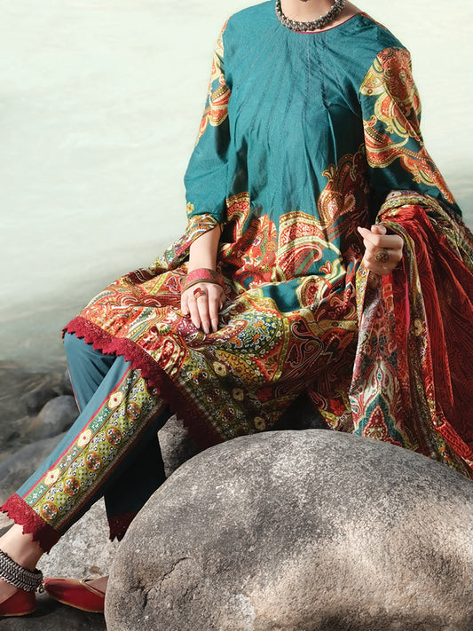 Green Silk 3Pc Unstitched - ALP-3PS-992