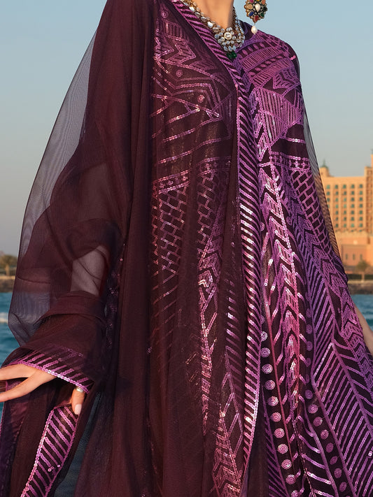 Purple Net 3Pc Stitched - ALP-3PS-910
