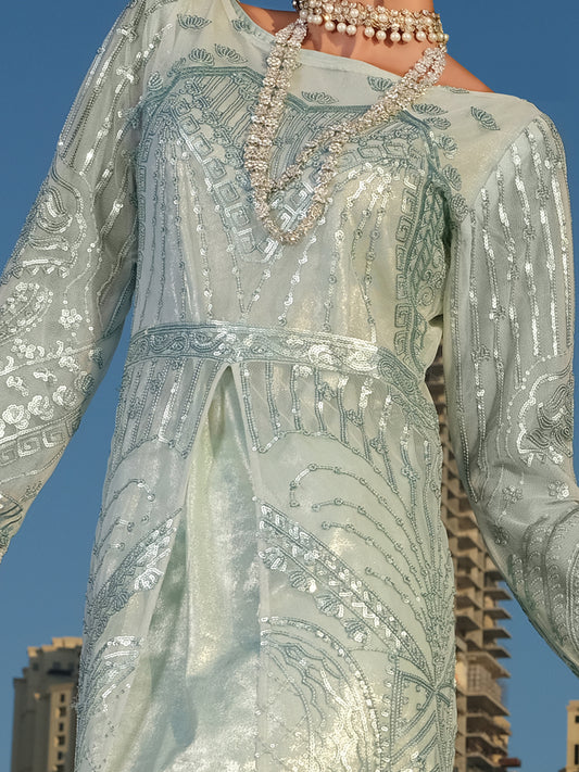 Sea Green Net 3Pc Stitched - ALP-3PS-906