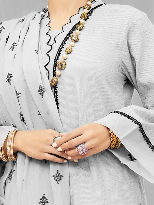 Light Grey Cotton Dobby 3Pc Stitched - ALP-1028