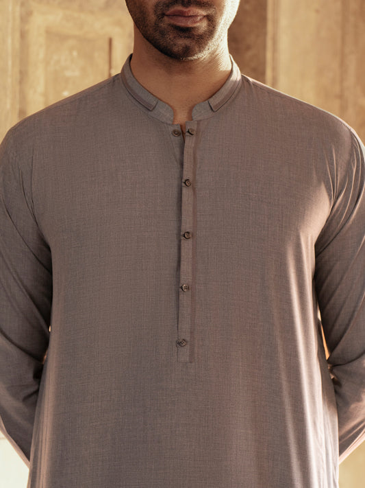 Dark Brown Blended Kameez Shalwar - ALWA-KS-518