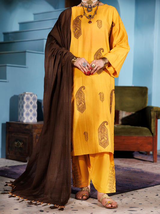 Mustard Lino Kara 3Pc Unstitched - ALP-3PS-1918