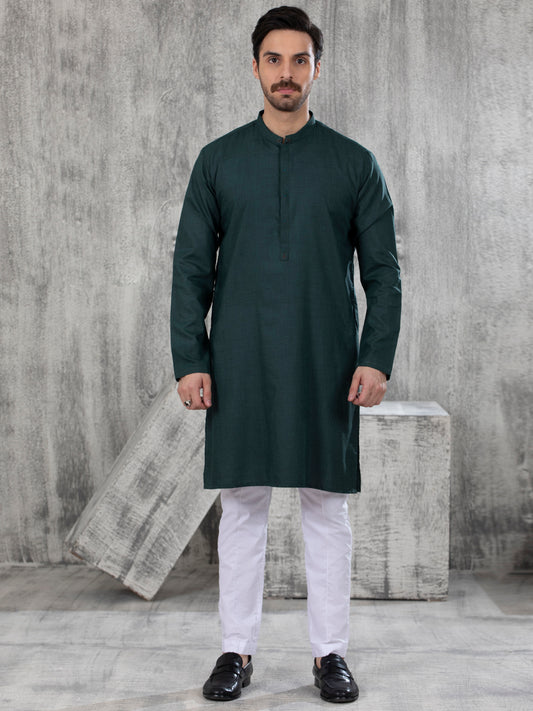 Dark Green Blended Unstitched Fabric - AL-UN-JHR-6151