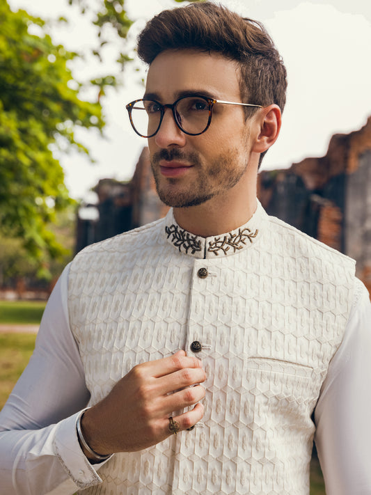 Off White Cotton Kurta Trouser - AL-KT-3059