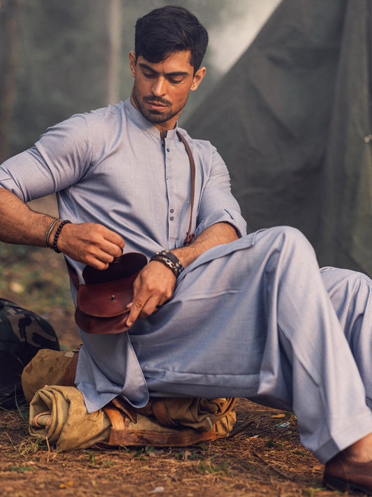 Light Blue Blended Kameez Shalwar - AL-KS-2600