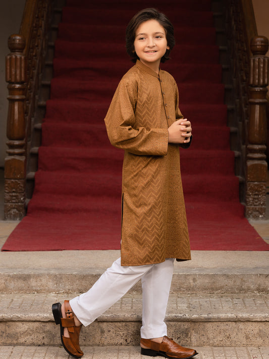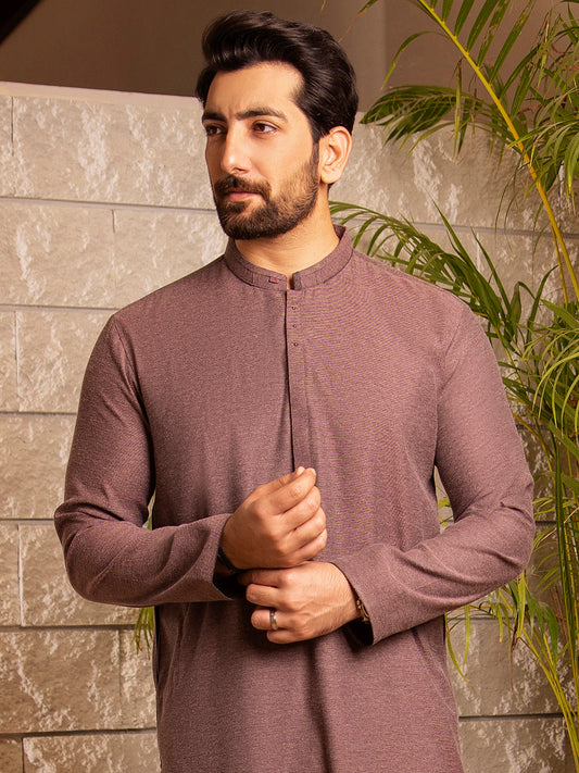 Light Brown Blended Kameez Shalwar - AL-KS-2571