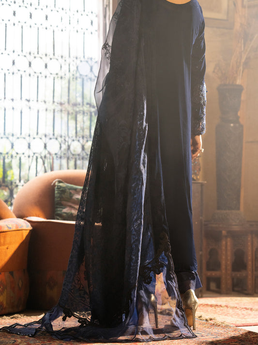 Dark Blue Velvet 3Pc Formal Stitched - AL-3PS-LS-444