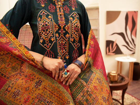 Teal Cambric 3Pc Stitched - ALP-3PS-1176