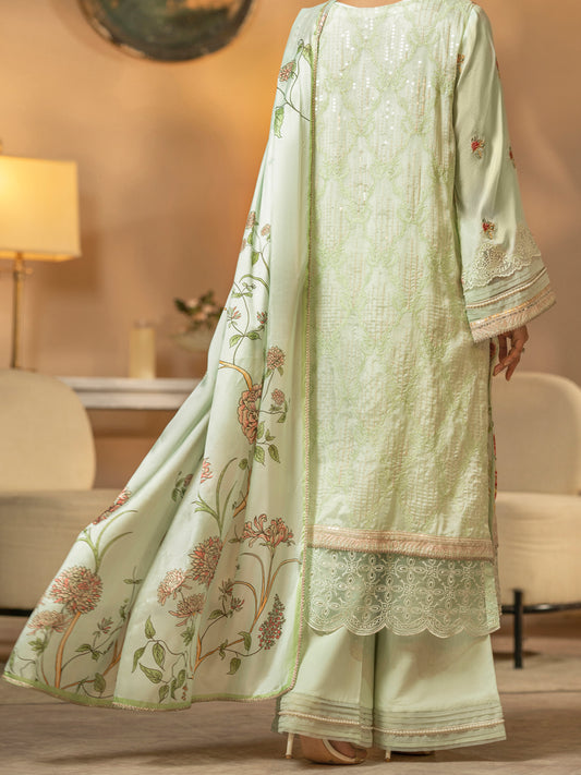 Sage Green Blended Unstitched Fabric - AL-UN-NZM-6193