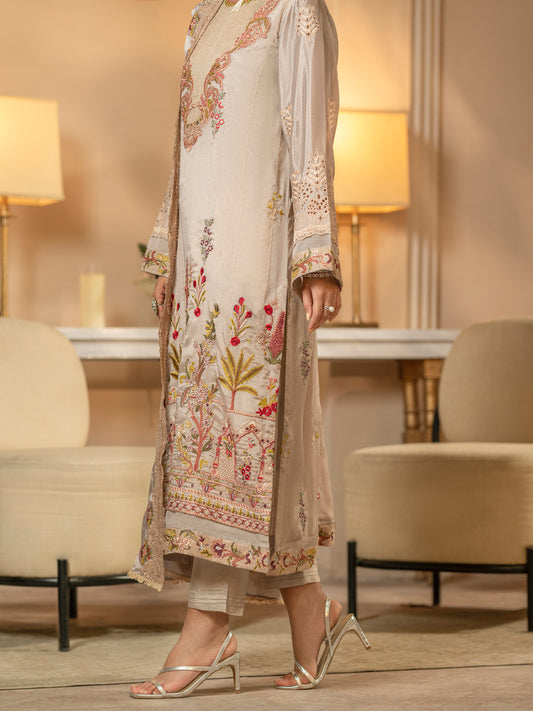 Grey Sheesha Silk Formal 3Pc Stitched - AL-3PS-LS-506
