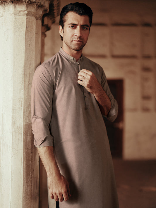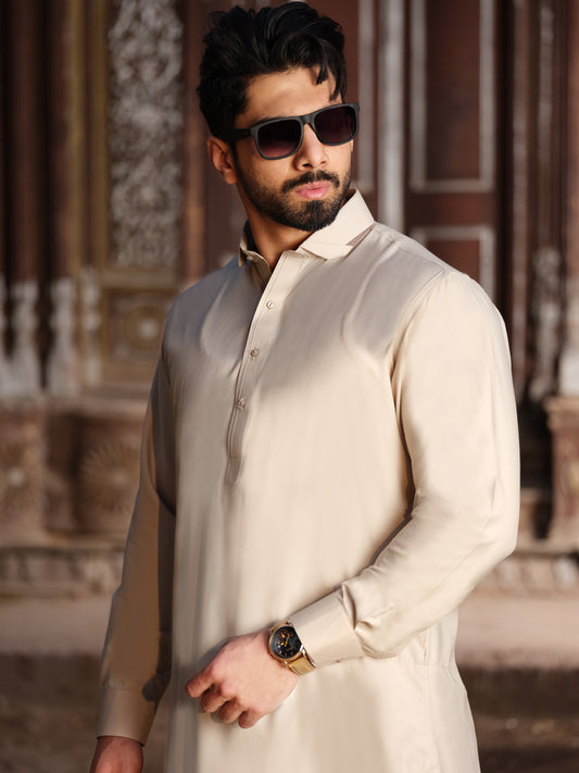 Beige Blended Kameez Shalwar - ALWA-KS-192