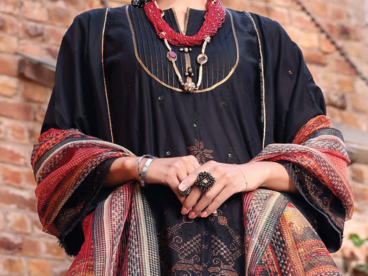 Black Cambric 3Pc Stitched - ALP-3PS-1065/S