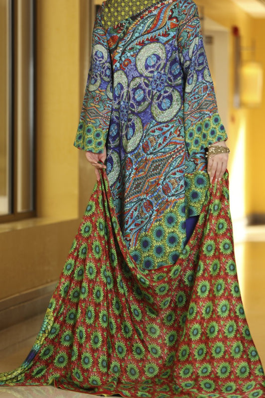 Royal Blue Silk Viscose 3Pc Stitched - ALP-563