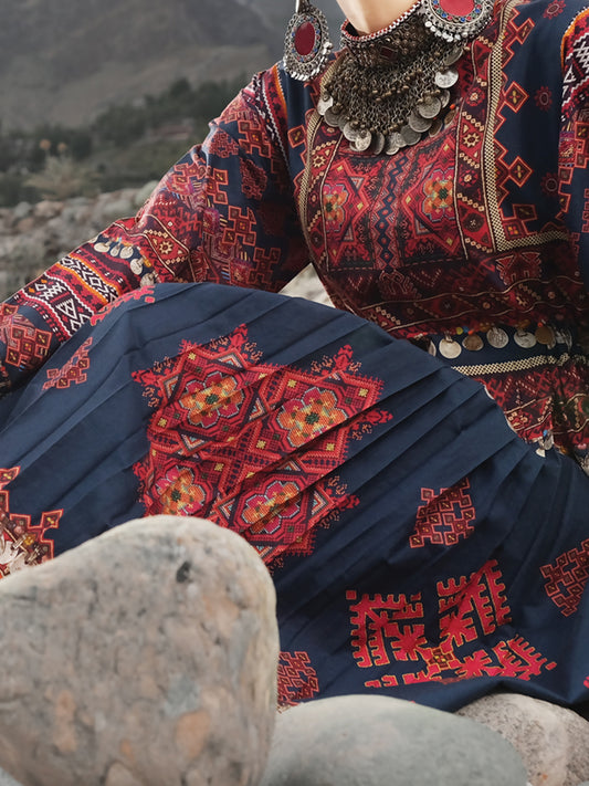 Navy Blue Blended Unstitched Fabric - AL-Johar-23