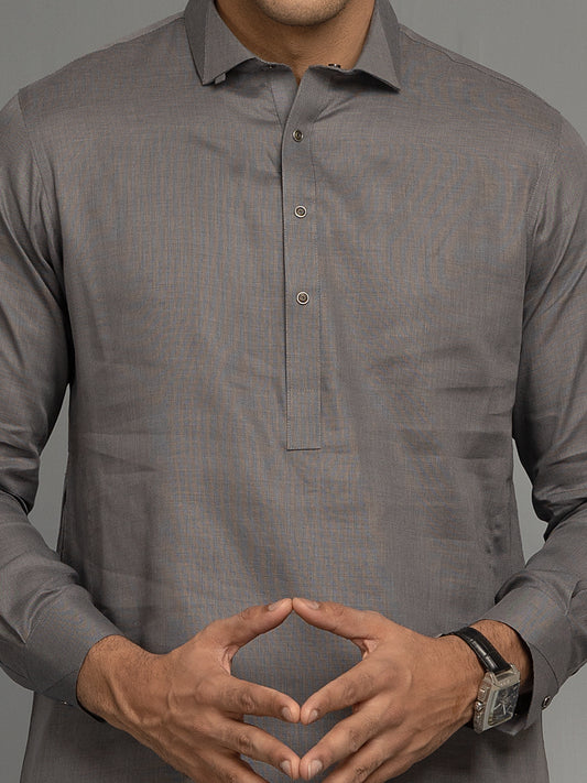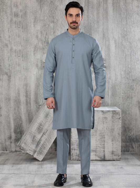 Dark Grey Blended Kameez Shalwar - AL-KS-2612
