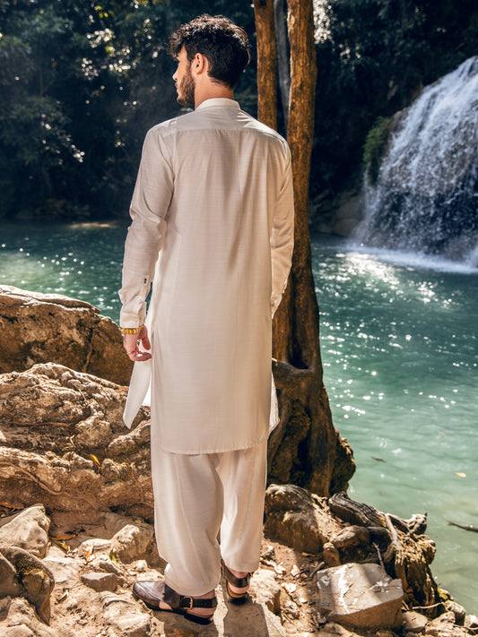 Off White Blended Kameez Shalwar - AL-KS-2807