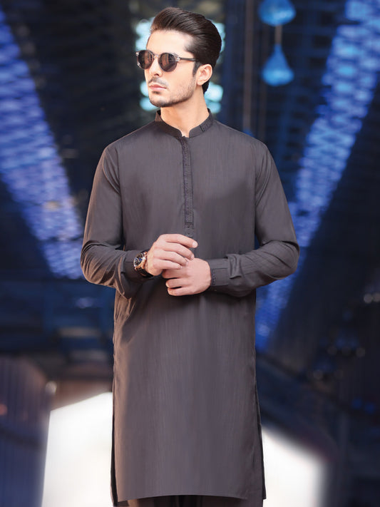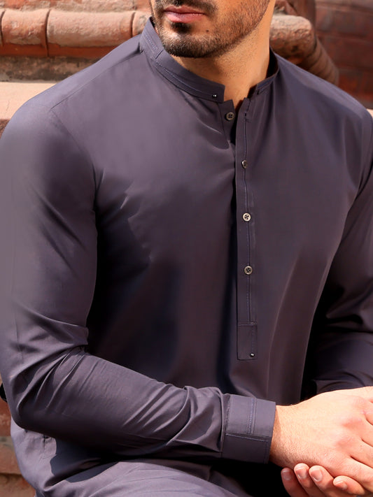 Dark Grey Blended Kameez Shalwar - AL-KS-2565