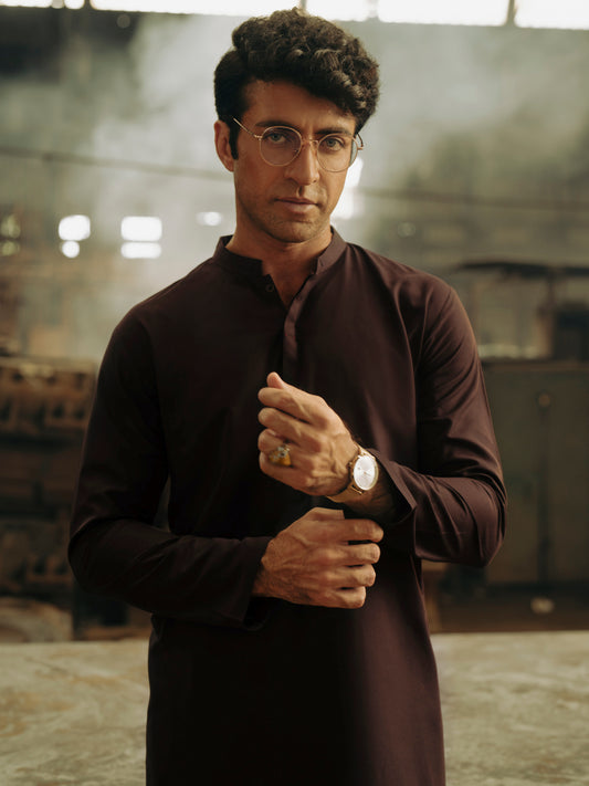 Dark Brown Blended Kurta Trouser - AL-KT-3091