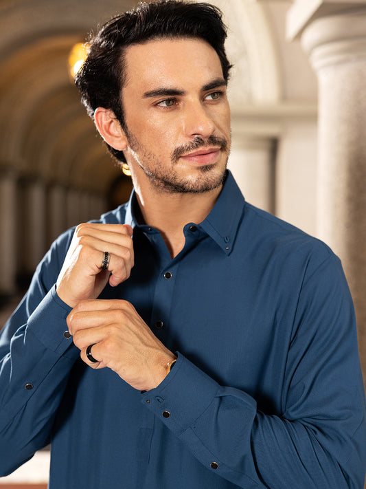 Teal Blue Blended Kameez Shalwar - ALWA-KS-417