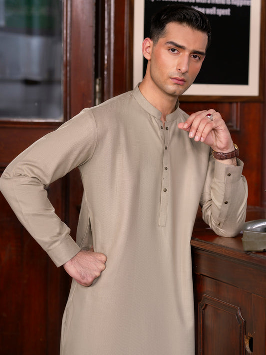 Beige Blended Kameez Shalwar - ALWA-KS-338