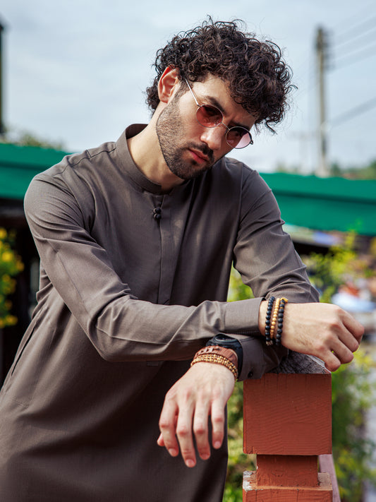 Brown Blended Kameez Shalwar - AL-KS-3155