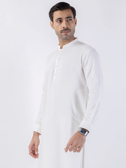 White Blended Kameez Shalwar - AL-KS-3139