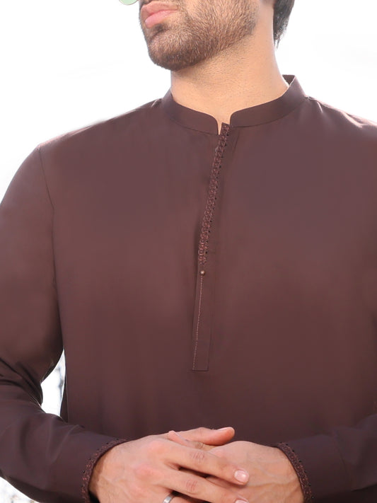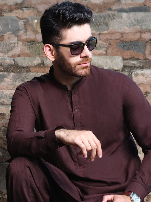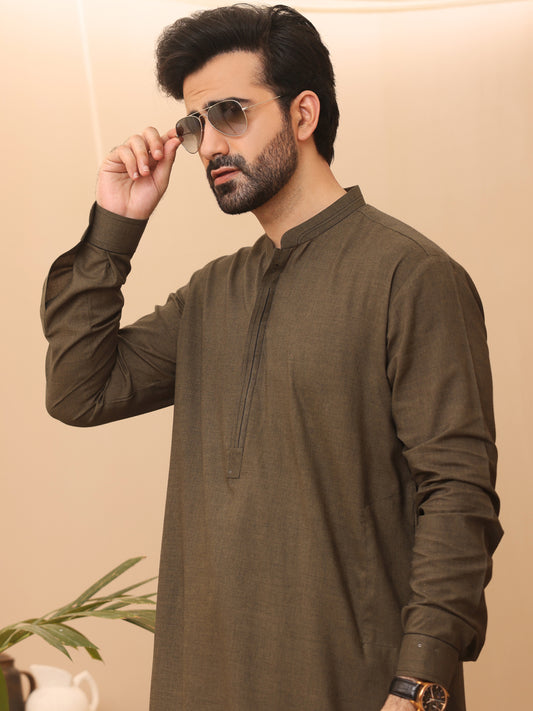 Dark Brown Blended Kameez Shalwar - AL-KS-2607