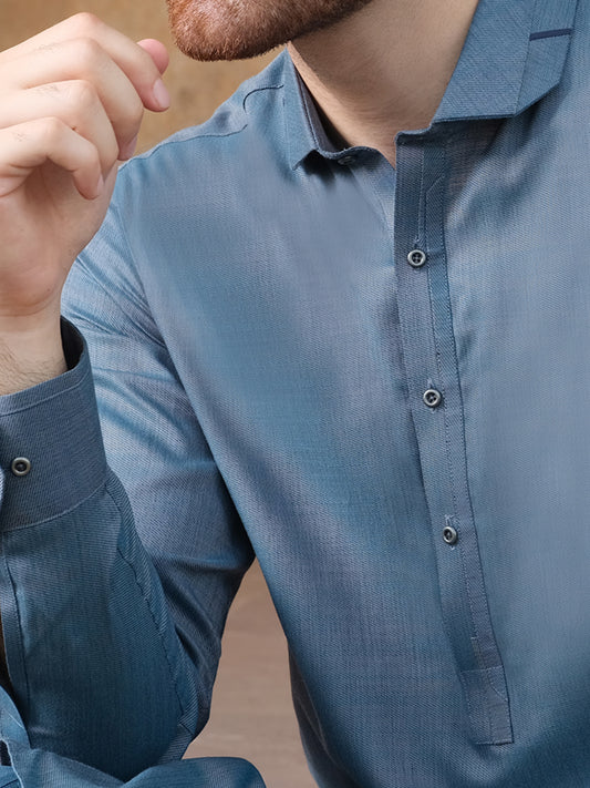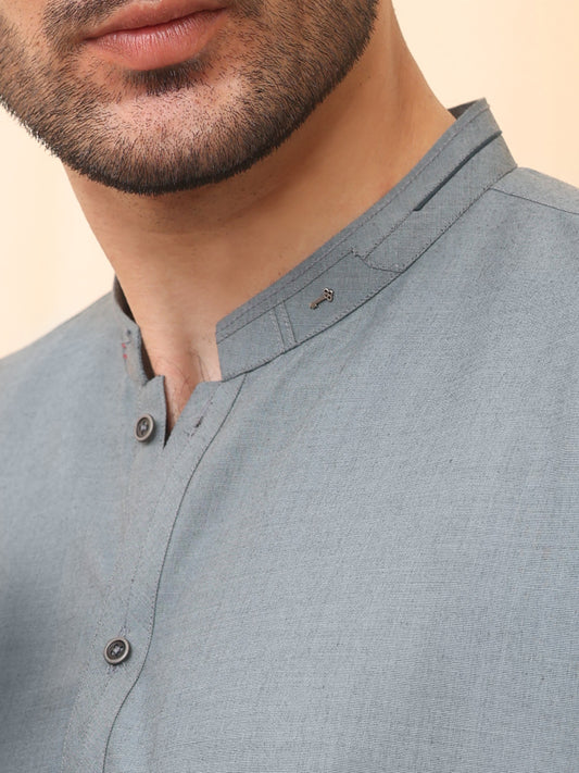 Ash Blue Blended Kameez Shalwar - AL-KS-2617