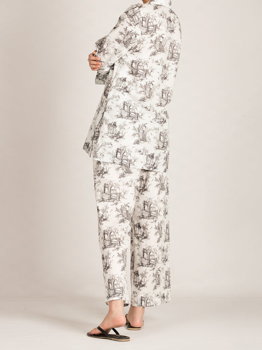 Black & White 2Pc Stitched Nightwear - AL-LKS-NW-1003